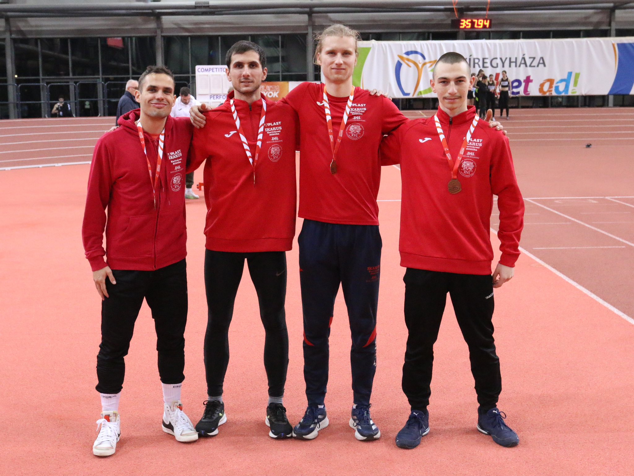 A bajnokság két zárószáma a férfiak és a nők 4x400 m-es váltófutása volt. A férfiaknál a 100m korábbi bajnoka, Deák Zalán újfent bizonyította, hogy a hosszabb sprint sem rémiszti meg (2025-ben U20-as bajnok volt ezen a távon rövidpályán), őt a sérüléséből épp felépülő Molnár Csaba, többszörös korosztályos gátfutó bajnok váltotta, akin csöppet sem látszott a kihagyás, tőle a még U18-as korú Danka Gábor vette át a botot. Gábor idén robbant be a mezőnybe, korosztálya leggyorsabb rövidpályás 400-as futása az ő nevéhez fűződik idén. Magabiztos, jó futás után váltotta Birovecz Ben Jordánt, aki rutinjához méltő kiváló teljesítménnyel hozta be bronzérmes helyen a váltót. Neki korábbi klubjával is van már sikere váltóval.